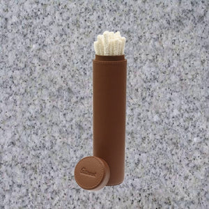 This Grafton Pipe Cleaner Holder features a durable exterior of reinforced, tan-colored leather with a hollow interior spacious enough to hold a standard pack of pipe cleaners. A push-to-close, leather cap completes the design, protecting the housed cleaners from accidental bending or damage.